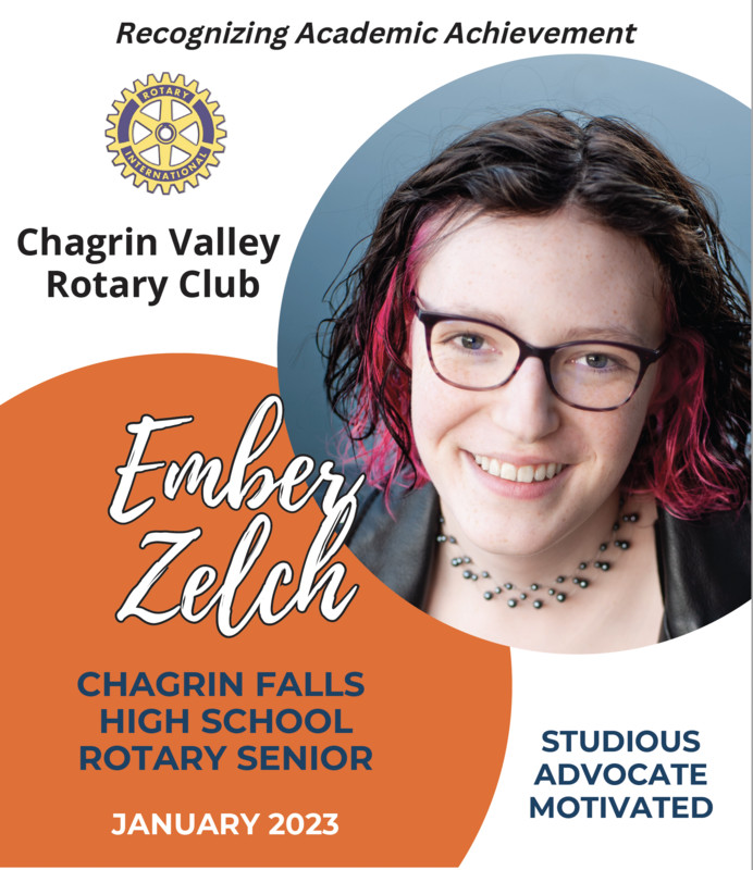 Chagrin Falls High School (CFHS) senior Ember Zelch has been selected as the January Chagrin Valley Rotary Student of the Month. Ember was chosen based on leadership and service qualities displayed in the community.